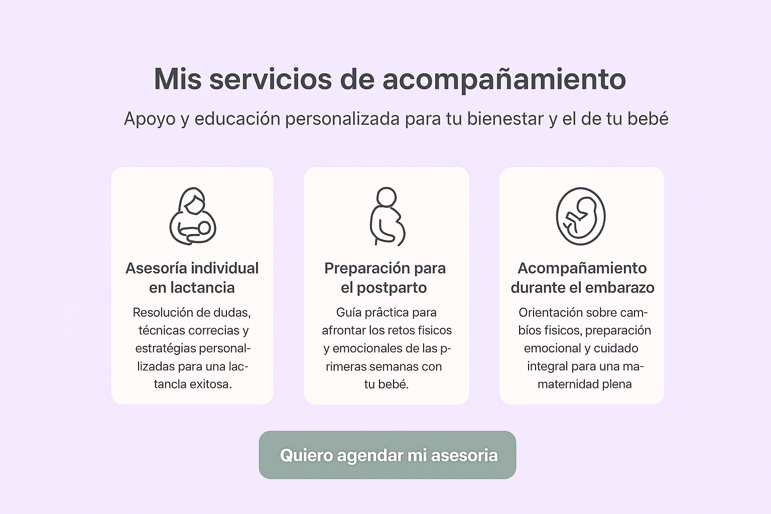 Educadora en salud y lactancia materna. Acompaño a madres durante el embarazo, postparto y lactancia con información confiable, apoyo emocional y herramientas prácticas para que vivan esta etapa con confianza, calma y bienestar.